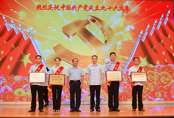 图为叶尊本副院长、何瑞星组长为受表彰的优秀党员、优秀党务工作者颁奖