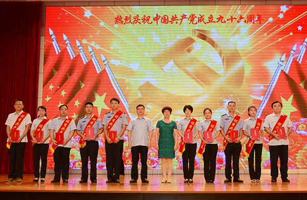 图为武雪丽副院长、郭朝阳副院长为受表彰的优秀党员颁奖