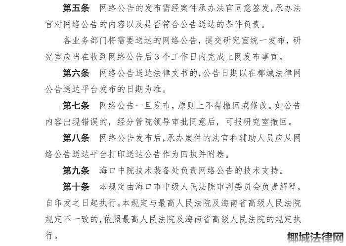 《海口市中级人民法院关于网络公告送达的规定 (试行)》