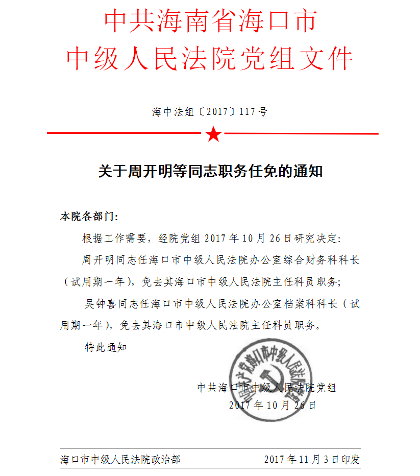 关于周开明等同志职务任免的通知