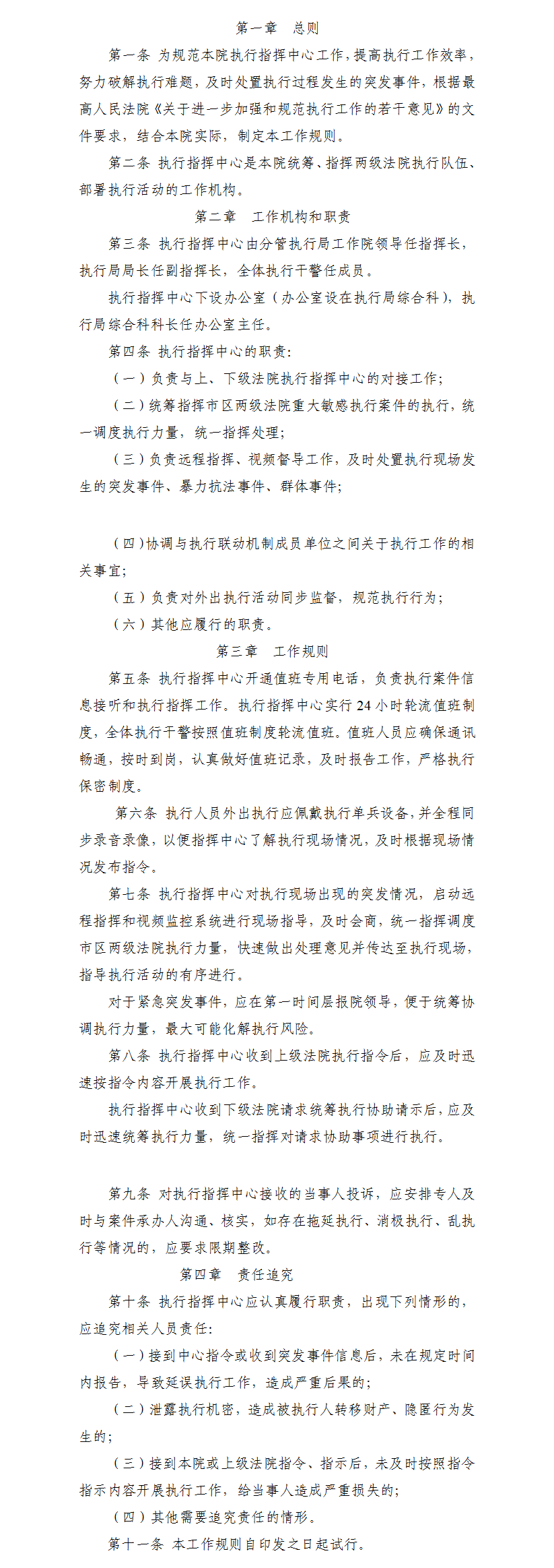 海口市中级人民法院执行指挥中心工作规则(试行)